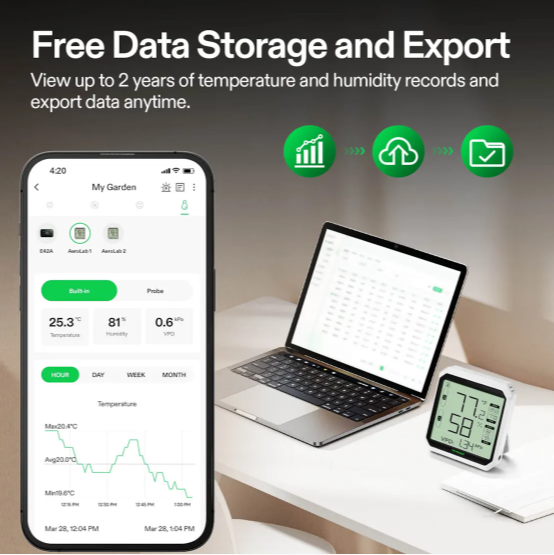Vivosun AeroLab THB1S Bluetooth Hygrometer Thermometer